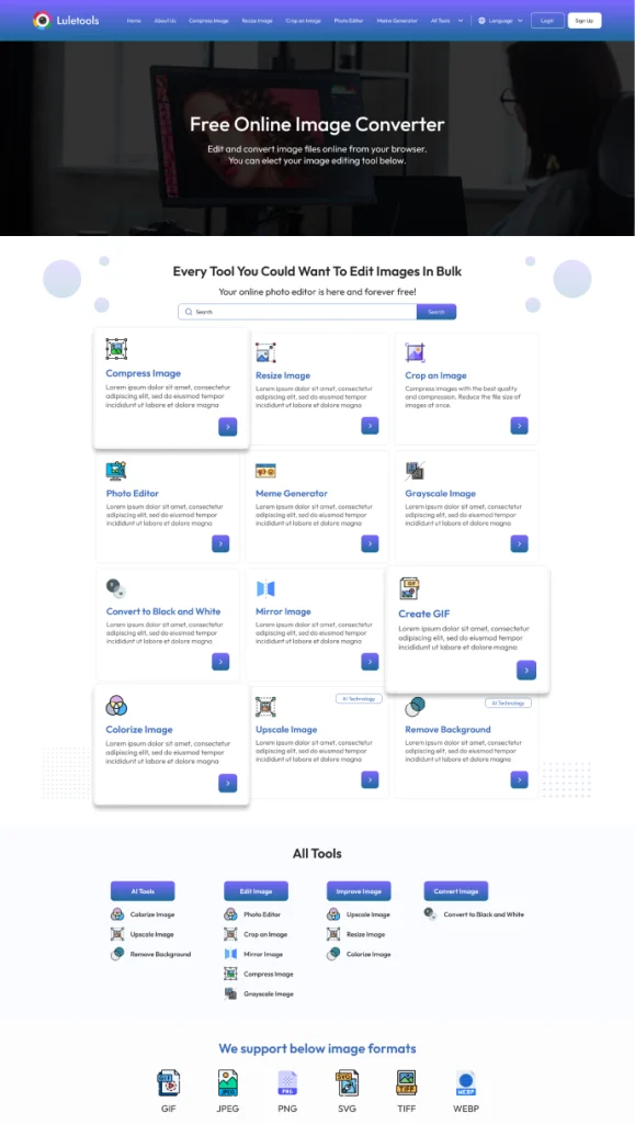 LuleTools’ challenge was to create a standout platform in the saturated market of image editing. They required a custom software solution that provided a range of free tools for resizing, compressing, and compositing. What they needed was not just a website, but a user-centric platform that could handle diverse editing tasks with ease and efficiency.